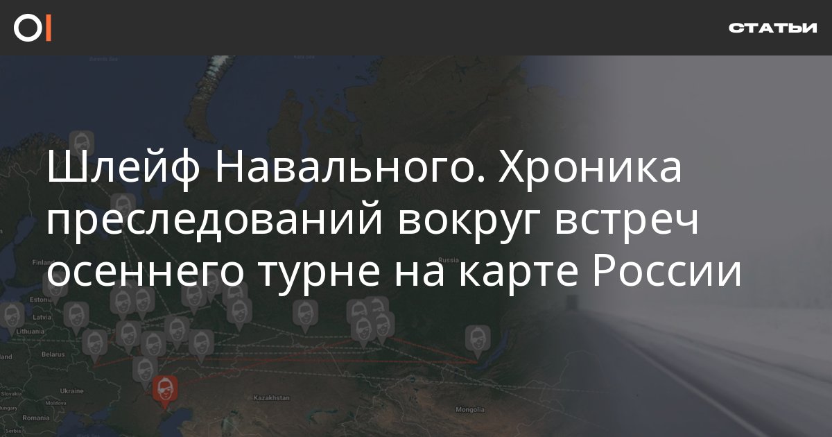 Осеннее турне Навального — это тысячи отказов в согласовании от местных администраций по всей России и всего 27 удавшихся встреч с самой неудобной последовательностью городов. Но даже там, где удалось провести встречу, зачастую все проходило не так гладко, как могло бы. Как минимум в 22 городах, по данным ОВД-Инфо, подготовка встречи и ее проведение столкнулись с различными препятствиями. В большинстве случаев организаторам не удавалось провести встречу в запланированном изначально месте, а жителей городов запугивали возможными последствиями. Сами встречи пытались срывать параллельными мероприятиями, а после акций представители местных штабов Навального подвергались преследованиям.