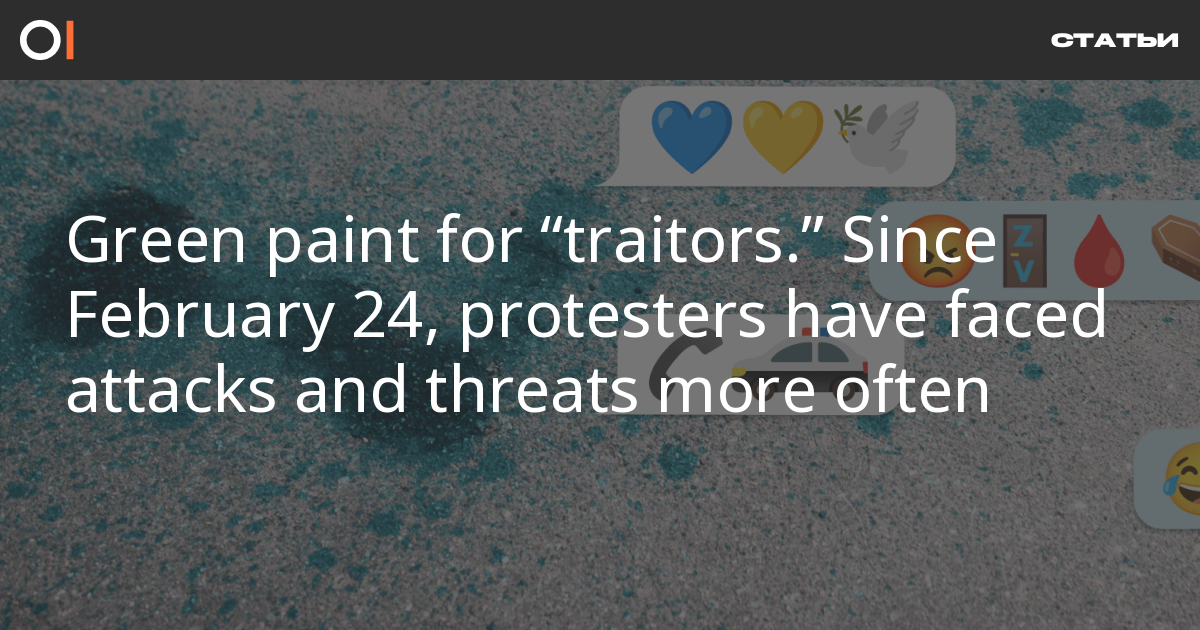 On August 18, unknown people poured brilliant green on a local resident Mikhail Baranov in Moscow. Before that, in March, a man was detained at an anti-war rally on Manezhnaya Square. From unknown Instagram accounts, Mikhail received insults and threats, and in July someone wrote «traitor» on the door of his apartment.