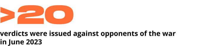 OVD-Info regularly updates infographics about the people criminally prosecuted for their anti-war stance. You can learn about the development of anti-war repressions from May 22 through June 21 of this year in our Wartime Repressions Report.
