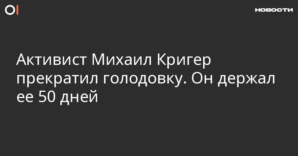 Кригер находится в ИК-5 в Орловской области. Он объявил голодовку, чтобы добиться перевода в общий отряд. Активист с 9 сентября изолирован от других осужденных: сначала его помещали в ШИЗО, а затем оставили в такой же одиночной камере под предлогом обеспечения его безопасности.