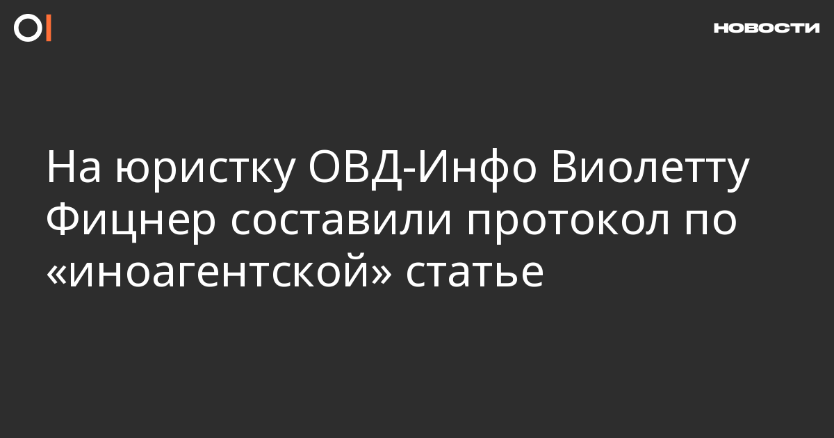 На юристку ОВД-Инфо Виолетту Фицнер составили протокол по «иноагентской» статье (ч. 2 ст. 19.34 КоАП). Об этом она сама сообщила ОВД-Инфо.