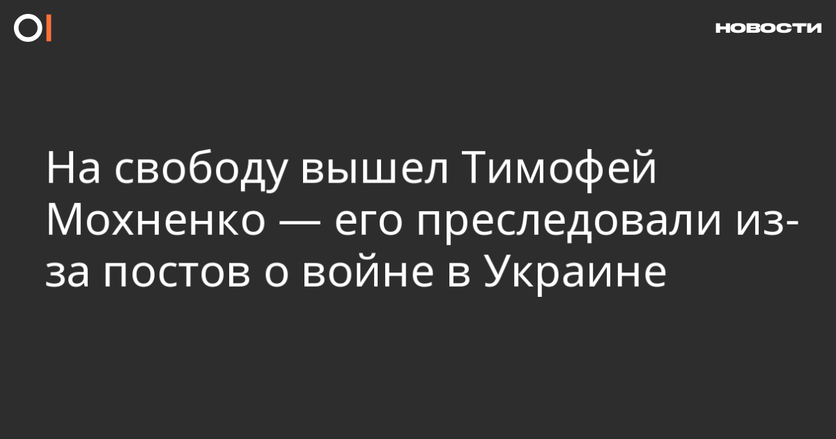 На свободу вышел Тимофей Мохненко — его преследовали из-за постов о войне в Украине. Об этом сообщает «Медиазона» со ссылкой на адвоката Наталию Тихонову.