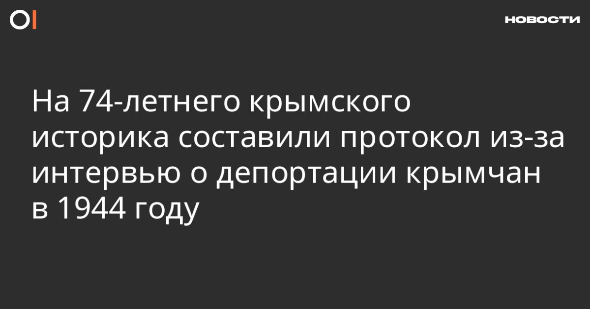 К 74-летнему крымскому историку пришли домой десять силовиков, чтобы составить протокол из-за интервью о депортации крымчан в 1944 году. Об этом сообщает «Крымская солидарность».