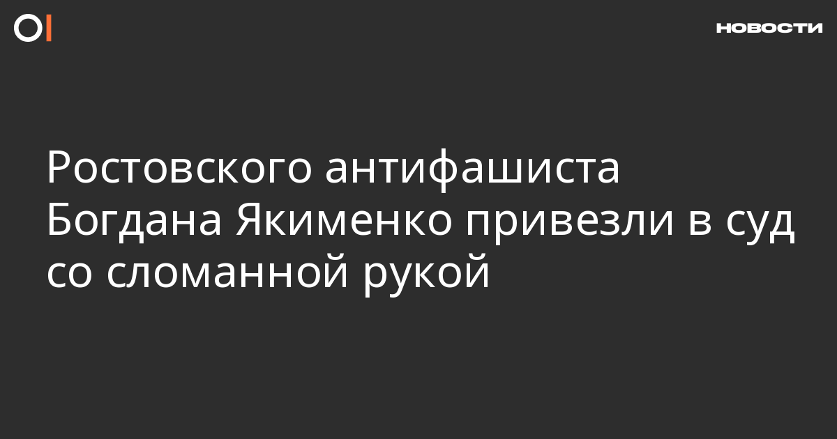 Ростовского антифашиста Богдана Якименко привезли в суд со сломанной рукой. Об этом сообщает корреспондент «Медиазоны» из здания суда.